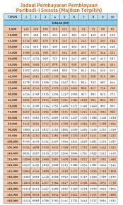 Jadual Pembayaran Bank Islam Pinjaman Peribadi